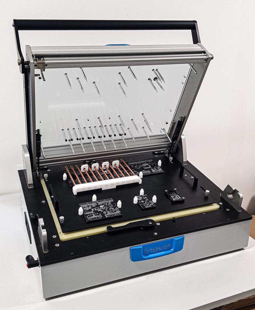 Electronic bed-of-nails, bed-of-nails test bench, electronic test fixture, in-circuit bed-of-nails testing, bed-of-nails manufacturing, bed-of-nails for electronic boards, printed circuit board bed-of-nails testing, PCBA production testing with bed-of-nails, bed-of-nails test solution, custom test bench, functional validation with bed-of-nails, electrical testing via contact points, automated bed-of-nails testing, high-density bed-of-nails, testing tool for electronic boards, bed-of-nails for industrial series, maintenance and repair of bed-of-nails systems, ICT (In-Circuit Test) with bed-of-nails, performance and reliability of test benches, electronic test fixture design